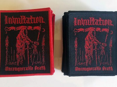 3.5" x 4.25" woven patches featuring the cover art for "Unconquerable Death."